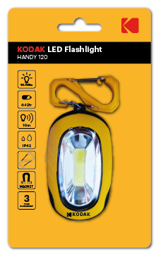 The KODAK Handy 120 LED Flashlight delivers up to 120 lumens of bright light for 8-12 hours. Its IP42 water resistance and magnetic base make it perfect for outdoor adventures, camping, or DIY projects. Stay prepared in any condition with this durable and reliable light source.